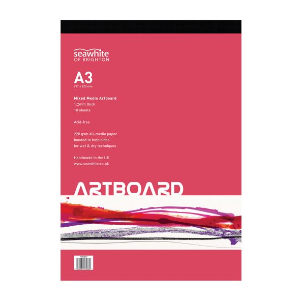 A3 Mixed Media Art Board Pad Extraordinary - rigid boards with bonded all-media 220gsm on both sides 2mm board backing Modern design front cover Stunning performance with the widest range of media - both wet dry Glued and taped on the short edge FSC Certified and Acid-Free Size: A3 - 10 Sheet Pad. Per sheet 1.2mm thick