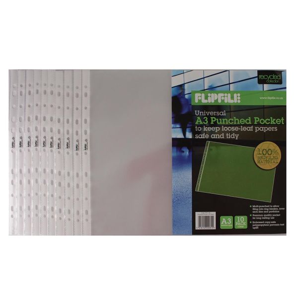 A3 PP Landscape Display Sleeves Pack of 10 Polypropylene thin clear sleeves Fit our A3 ringbinder or any A3 ringed folder