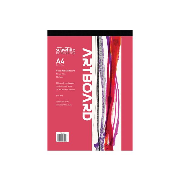 A4 Mixed Media Art Board Pad Extraordinary - rigid boards with bonded all-media 220gsm on both sides 2mm board backing Modern design front cover Stunning performance with the widest range of media - both wet dry Glued and taped on the short edge FSC Certified and Acid-Free Size: A4 - 10 Sheet Pad. Per sheet 1.2mm thick