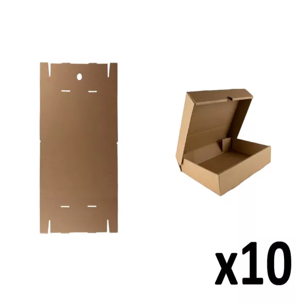 A5 Flat-pack storage box - Pack of 10 Extremely rigid cardboard storage boxes Supplied flat - Easy to assemble Kraft lined outer Individual internal size approx: 235 x 175 x 60mm Individual external size approx: 250 x 195 x 65mm