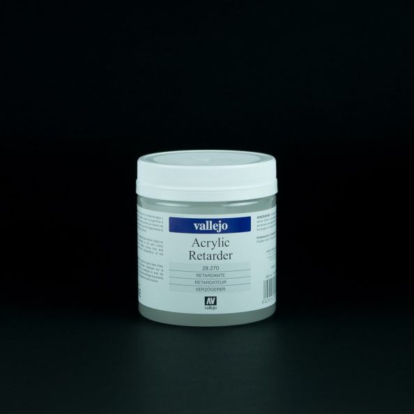 Vellajo Acrylic Retarder Mix with acrylic colours to a max. of 10% Increases open / drying time Useful for blending and shading or wet-in-wet techniques Fantastic for layering up colours and playing with texture and tone Reduces skin formation on the palette Size: 500ml