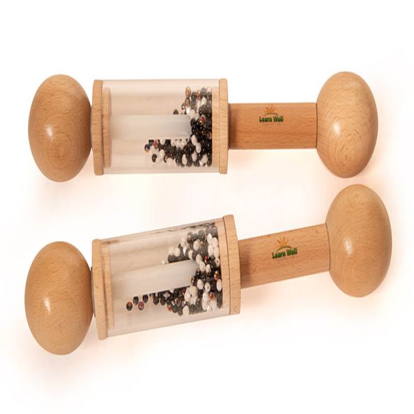 Babies and toddlers will take delight in these Black and White Mini Rattle Rollers. Watch the black and white beads tumbling around and listen intently to the rain like sound of the beads brushing against each other. Encourages eye tracking, hand-eye coordination and gross motor skill development