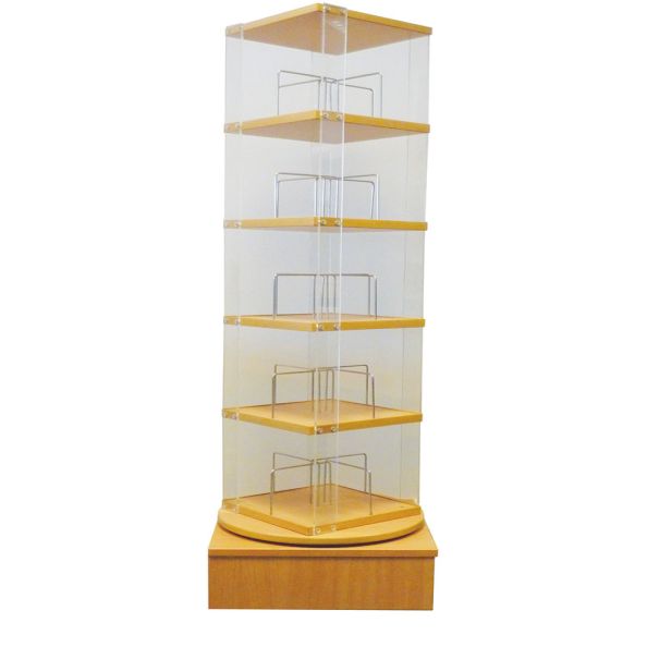 • This smaller version of adult paperback tower holds 125 books or 60 videos - coloured mfc • The tower and base can be chosen in two different colours to create your own multi-coloured unit • Please specify the base and tower colours when ordering the coloured book spinner • Size: W400 x D400 x H1350mm • Internal slot height: 220mm • Dimensions for book space between dividers: 115 x 115mm