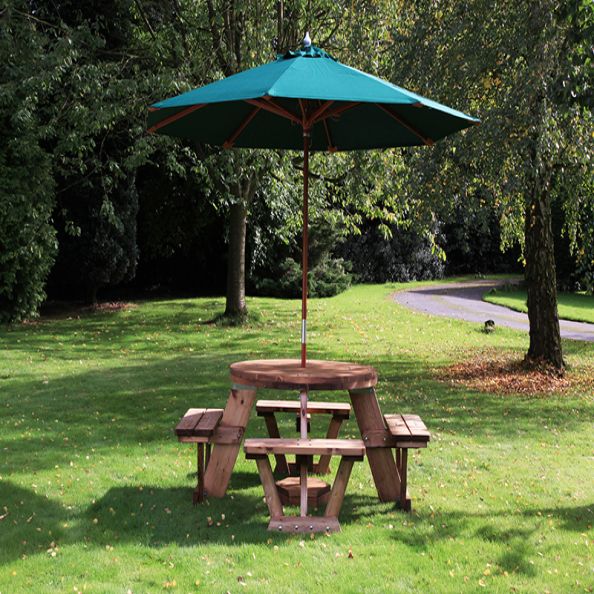 Designed for commercial use and built to last. Versatile heavy duty outdoor picnic table. Circular 6 seater with wheelchair access
