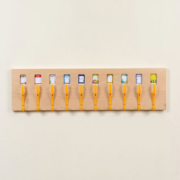 Coat Hook rail with 10 assorted coloured hooks - Beech