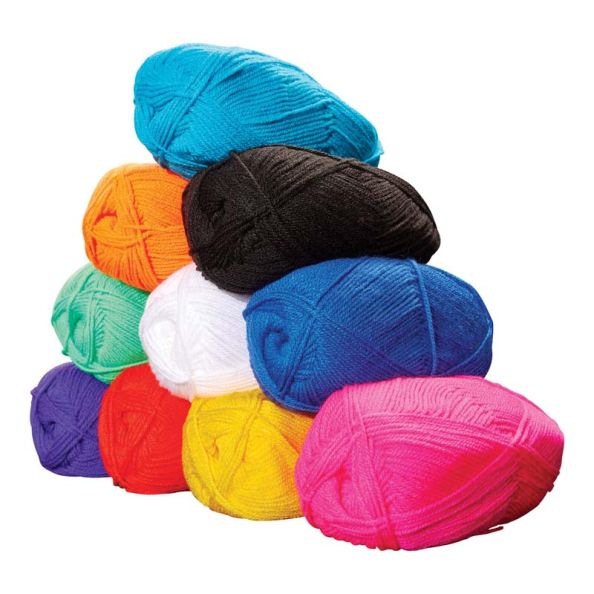 Assorted pack of double knit acrylic yarn. Use for weaving, threading, primary sewing, knitting, creative textiles and general art and textiles projects. Multicoloured. Pack of 10. Weight 100g.