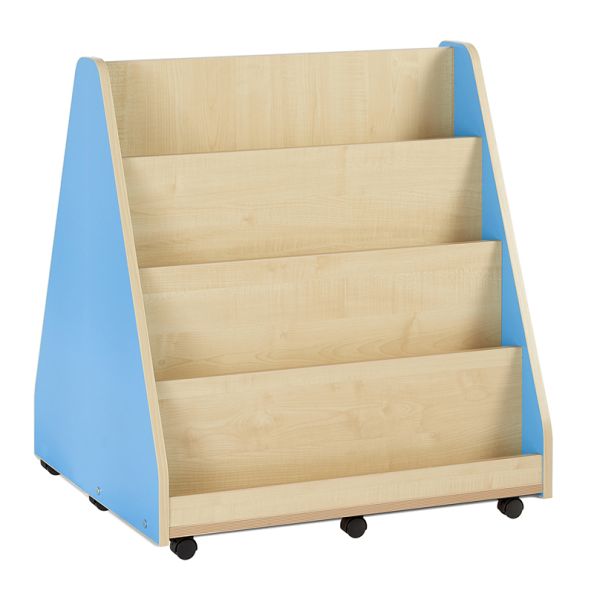 Double sided library unit with 3 tiered fixed shelves on both sides