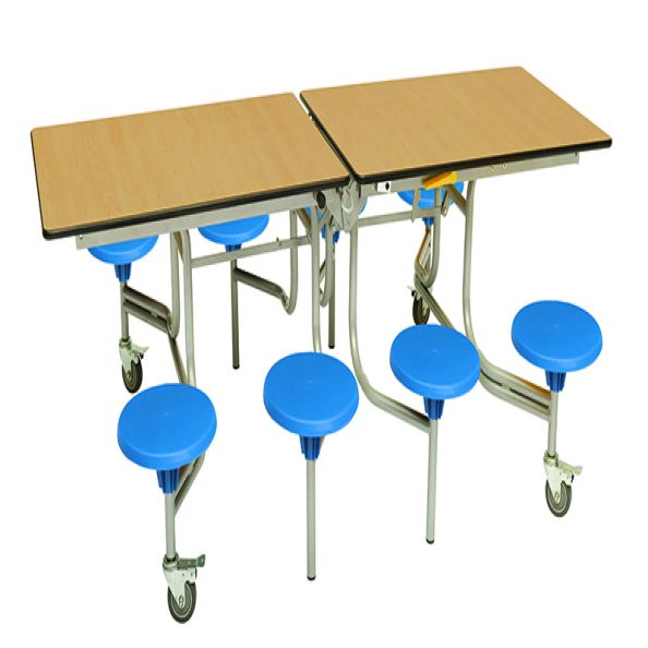 18mm MDF core top with hard wearing high-pressure laminate surface for high endurance Tops have a seamless edging making them moisture resistant and resilient to damage All moving parts are secured with locking nuts and bolts to prevent detachment over time Units come with patented centre lock bar system which includes override mechanism for compact storage and transit position for safe handling and set-up Choice of two heights (primary and secondary) The folding rectangular table is also available with 16 stools x H61cm for infant schools only 14 table top colours to choose from and 11 stool colours to choose from 15 year warranty on welds and mechanisms and lifetime warranty on all welded parts