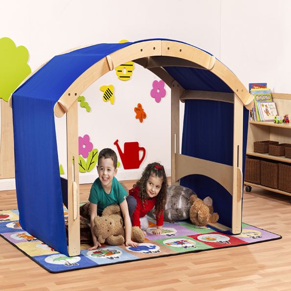 Whether it be a cave, a jungle, a time machine or even an underwater submarine, the Indoor/ Outdoor Folding Den can be decorated to match any theme. With a unique folding mechanism, the den is simple to assemble and easy to move between indoors and outdoors as required. • High quality, durable birch plywood • Easy to move with our unique folding mechanism • Washable blue fabric cover doubles as a sun shade • Suitable for both indoor and outdoor use (must be stored indoors) • Rounded corners and lacquered safety edges • Simple self-assembly required • Manufactured in the UK • 5 year guarantee W1700 x D1120 x H1160mm