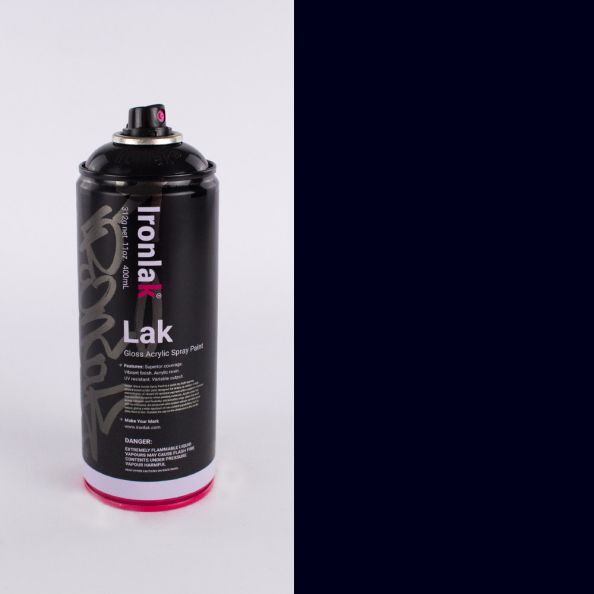 Ironlak Spraypaint. Perfect for painting on canvas wood metal concrete pottery brick and much more Low acetone levels mean Ironlak is more environmentally friendly than other spray paints 100% compliant with European chemical laws. Colour: Augor's BlackoutSize: 400ml **UK MAINLAND DELIVERY ONLY** - **Subject to stringent carriage rules we are unable to send spraypaint to offshore destinations including Northern Ireland Isle of Wight Isle of Man Scilly Isles Jersey Guernsey**