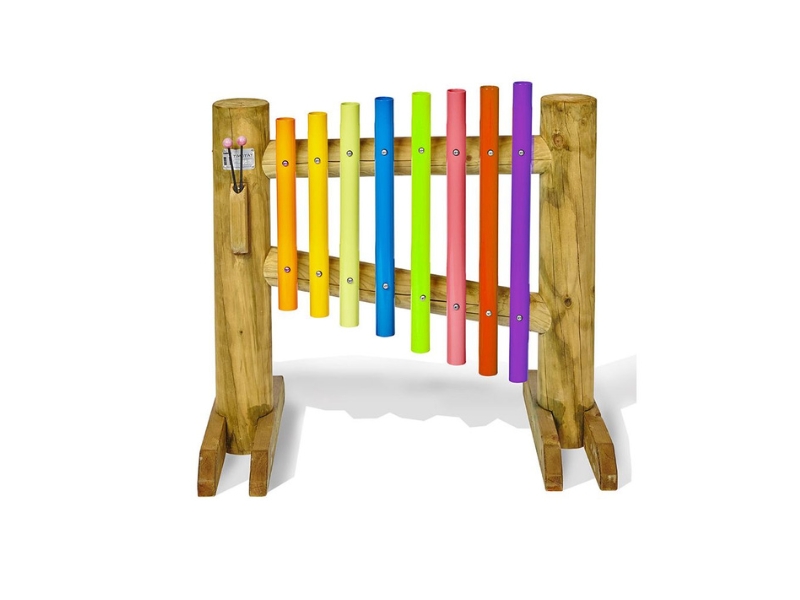 Introduce the magic of sound with these colourful chimes, mounted on a robust timber frame. The soothing musical tones create a calming atmosphere while also supporting sensory exploration. Supplied with two beaters, the set includes eight multicoloured chimes—perfect for outdoor music-making and spontaneous performance.