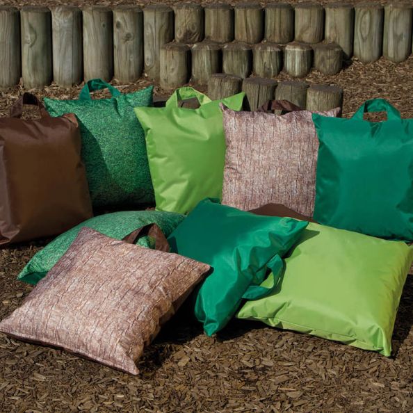 Get closer to nature with this mix of realistic digitally printed and natural coloured cushions. Inspire lessons on nature, lifecycles, natural materials, forests and more using these soft cushions as comfy seats or a teaching resource. Supplied with a handy holdall for easy storage and carrying. Includes: 2 x bark print, 2 x grass print, 2 x dark green, 2 x lime green and 2 x brown.