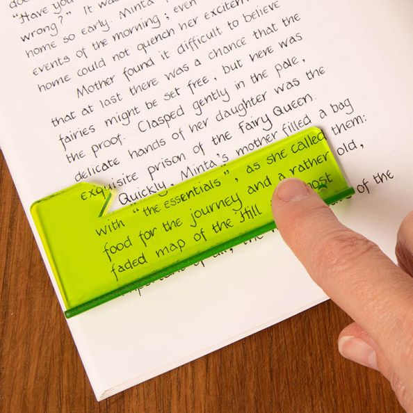 The easily portable and discreet Linetracker has been designed to help children who struggle with sequential scanning of written text from left to right. Using the Linetracker the child uses the arrow indicator to focus on the correct line of text, while the translucent material also allows a partially masked view of the surrounding text, allowing the child to use contextual clues at the same time. Pack of 10 Line trackers.