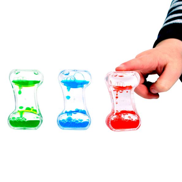 You simply turn them upside down and watch the two differently coloured bubbles simultaneously walk down the staircase to the bottom of the tube. The liquid timer takes approx 1 min to run through. Please note these timers are for sensory calming and not for accurate time management. The action of the liquid showers can stimulate visual learning with regards to colours and the passing of time. This sensory activity is praised as a fun and stimulating early years resource for younger children.