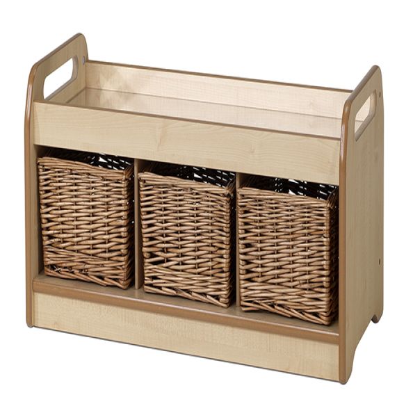 Low level and easy access unit with mirror surface for sensory play. • Manufactured in the UK from premium grade maple melamine • Hard-wearing, scratch-resistant and easy-clean surface • Removable safety mirror surface • Top ledge creates enclosed play area • Resources accessible from both sides • Includes 3 baskets • Fully assembled • 10 year guarantee W900 x D400 x H430mm