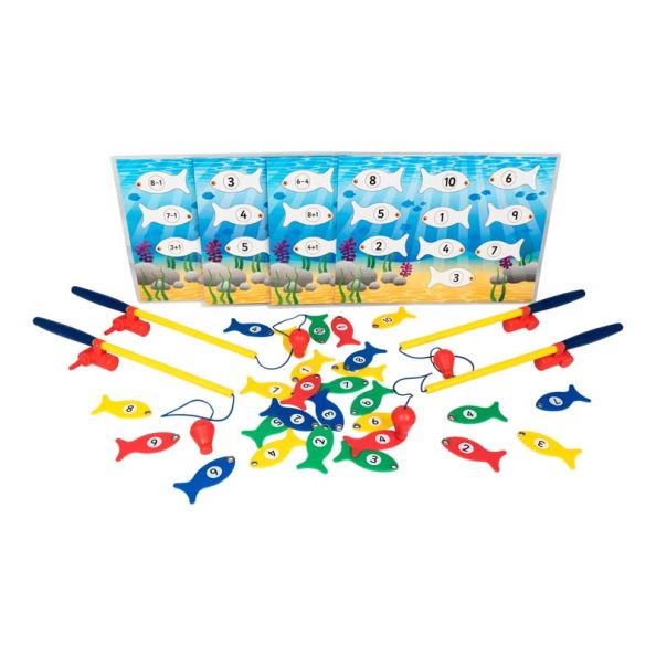 The 4 double-sided game mats offer a number identification game, and addition and subtraction game In both games, all the fish are spread out onto a flat surface. Each child takes a fishing rod and a game board. In turn, each player catches a number which can be used to fill the missing part of a calculation. Metal parts are made of special ferritic stainless steel, which won't rust in water or sand.40 x magnetic fish 4 x double-sided work cards 4 x magnetic fishing poles 1 x instruction guide