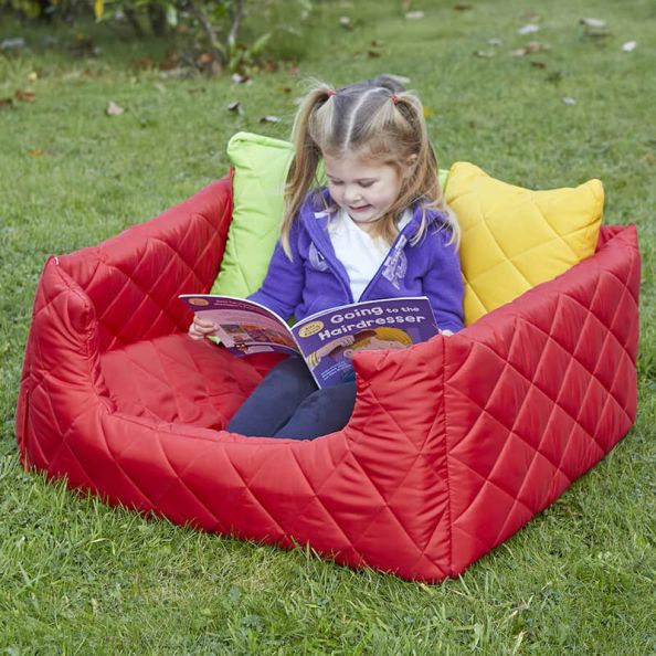 Children will enjoy grabbing a book and snuggling up in this cushioned soft corner. Use indoors or out. Removable covers, hand wash only. Cushions not included. H33 x W76 x L76cm