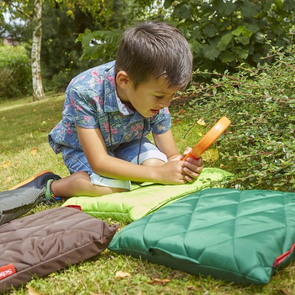 These lightweight, flat cushion mats are ideal for taking outside. Made from a quilted waterproof fabric, the cushions are washable at 40°C. Primary: 2 x Red, Lime Green, Blue, Yellow. Natural: 2 x Lime Green, Dark Green, Brown, Dark Brown. Incorporates stitched carry handle.