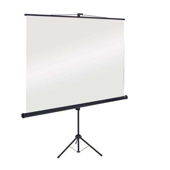 Fully height adjustable. Heavy duty tripod base. Integral carry handle. Plain matt white borderless surface.