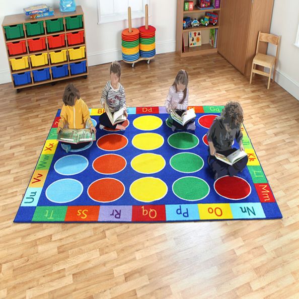 • A bright addition to the classroom or nursery environment • Features 20 brightly coloured ovals surrounded by the alphabet in upper and lower case • Size: 3m x 2m