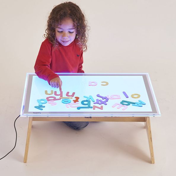 Set of 26 letters in a child friendly font made in colourful translucent 3mm acrylic. Ideal for use on a light box to make letter recognition interesting and exciting. Letters come with a 2.5mm hole at the top balance point so they can be strung up or pin.