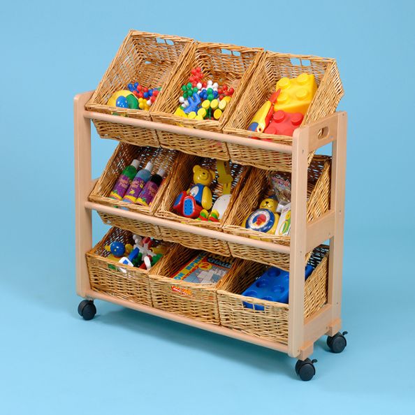 • New range of high quality classroom tidy trollies made from solid beech, finished in a clear natural lacquer • All units supplied c/w castors for easy mobility • Choose from plastic tubs (choice of Clear-CL,Red-RD, Blue-BL, or Yellow-YW), or wicker baskets for a more natural look • Supplied flat packed for easy self-assembly – please ask for details of our assembly service if needed • Single trolley: Dimensions w860 x d410 x h810mm • Supplied c/w 9 x wicker baskets
