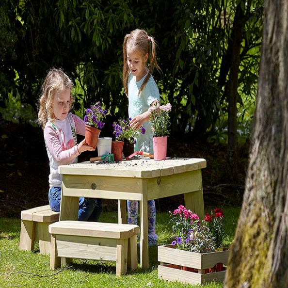 Perfect for a variety of activities. Set includes 1 table & 2x benches. Table: W72 x D72 x H50/45cm. Bench: W55 x D30 x H25/20cm