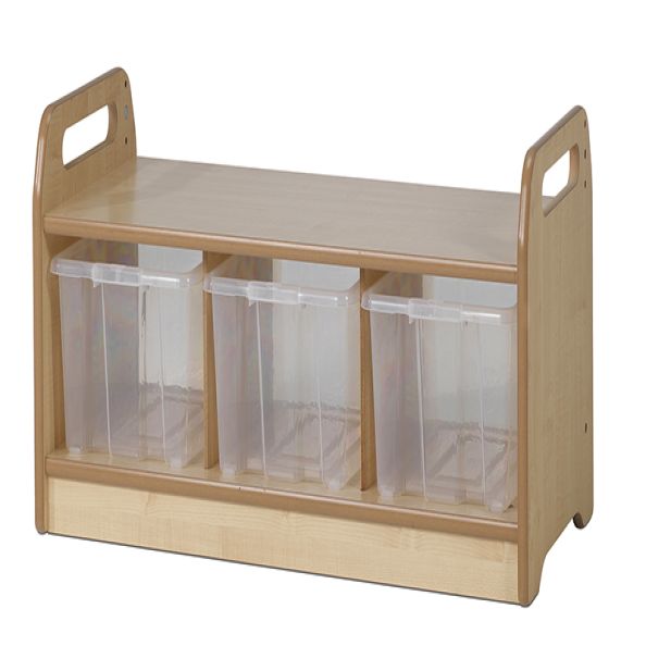 Easy access storage unit, specially designed for early years environments. • Manufactured in the UK from premium grade maple melamine • Hard-wearing, scratch-resistant and easy-clean surface • Resources accessible from both sides • Sturdy construction • Includes 3 clear tubs • Fully assembled • 10 year guarantee W900 x D400 x H430mm