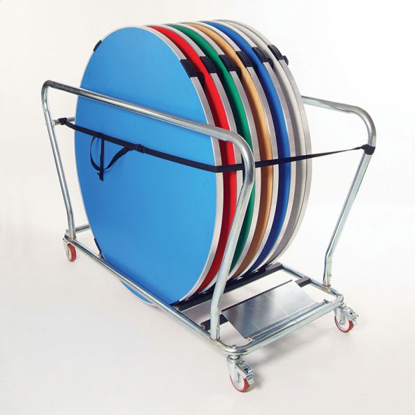 Table trolleys in 2 Sizes. Takes up to 14 tables through a standard doorway. Locking castors