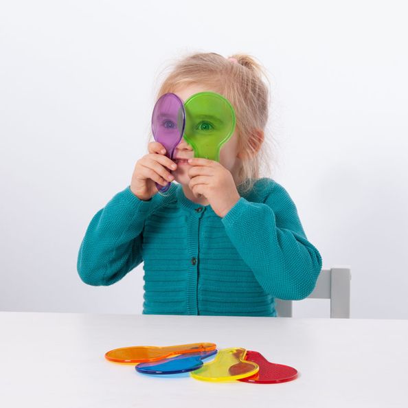Translucent colour plastic paddles in primary and secondary colours, ideal for colour mixing. The larger size makes them ideal for group work as well as individual exploration.