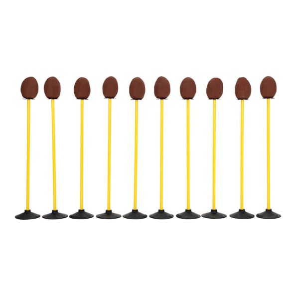Rubber crumb weighted base makes the game suitable indoors or out. Perfect to develop hand eye co-ordination and throwing skills. Encourage children to use bean bags or medium sized balls to knock down the plush coconut targets to begin with, and then vary the challenge by increasing distance from the thrower to the target, or change the thrown items to lighter or smaller to further develop the physical development opportunities.10 x Bases, poles and stands 10 x Weighted coconut targets