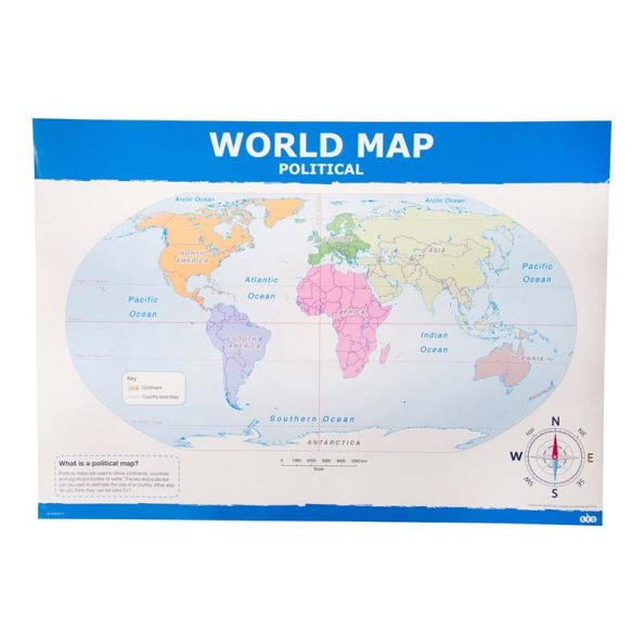 A high quality, double-sided map of the world with cartography suitable for KS1.