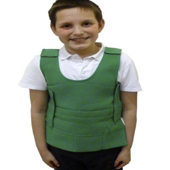 Made from soft, breathable, non-flammable material, these vests slip over the head with ease and close at the shoulders and sides with Velcro® for easy adjustment and a snug fit. Weight packs are inserted into the eight concealed pockets (four at the front, four at the rear) of the vest. Each pocket has Velcro® to keep the weight packs in place. The length of the vest can be adjusted by folding up the lower part and securing using the Velcro® strip on the inside. Machine washable. Available in four sizes. Size: Extra-Large