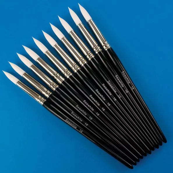 White Synthetic Brush Versatile tapered white synthetic hair Ideal for light and heavy paints Short Handles Round Tip 10 x Size 16 brushes